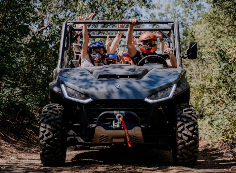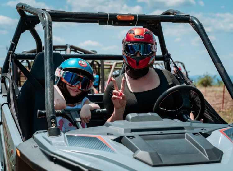 All ATVs and three-seater Buggies are independently operated by you. On six-seater BUGGIES you can choose to drive or ride alone. If our instructor is driving the machine, the capacity of the BUGGY is 5 seats.