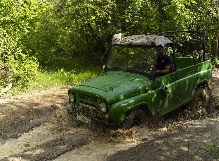 Възможност за избор между самостоятелно шофиране и возене в джип за офроуд, с включен шофьор.