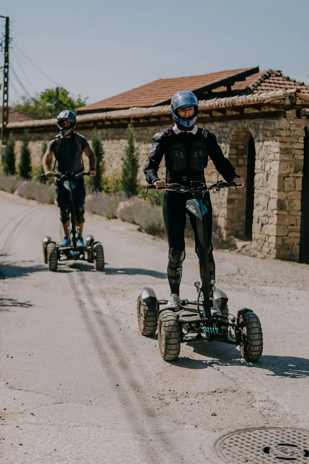 Нашетият 4х4 скутер е лек, маневрен и лесен за управление – затова е идеален както за начинаещи, така и за опитни карачи. Дава увереност на хора, които се качват за първи път, жените го харесват заради лекото кормило и удобното управление, а мъжете и по-опитните водачи – заради мощността, бързото ускорение и проходимостта. Предлагаме ви градски разходки с атрактивни, лесни за управление и удобни 4х4 скутерИ. Опознайте най-красивите забележителности на град Велико Търново. Изживейте незабравимо приключение и се насладете на невероятните панорамни гледки по калдаръмените улици на Старата Столица, Архитектурно-музеен резерват Трапезица, крепостта Царевец и още!