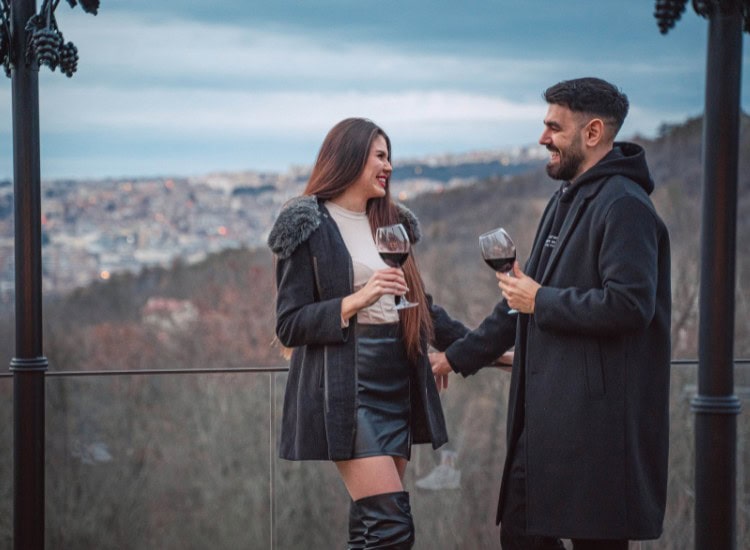 Вашият романтичен уикенд за двама сред красивата природа около старопрестолния град ще ви позволи да се потопите в дълбока релаксация с очарователна гледка към Велико Търново. Вие и вашата половинка ще се насладите на бутилка бутиково вино – бяло, червено или розе. Отпийте, насладете се и споделете нежни моменти на романтика и уединение!