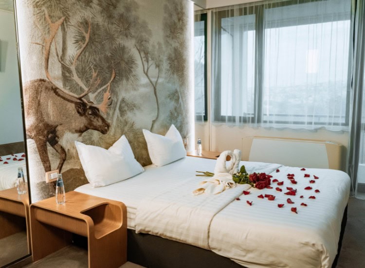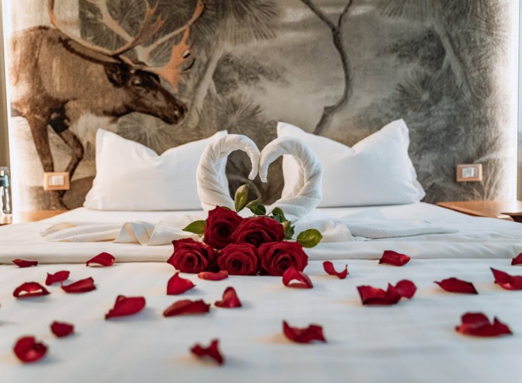 Очаква ви романтичен уикенд за двама в уютна хотелска стая в Парк Хотел RAYA Garden, украсена с листенца от пурпурни рози, разпръснати по леглото за една истинска романтична атмосфера. Страхотна идея за романтичен уикенд!