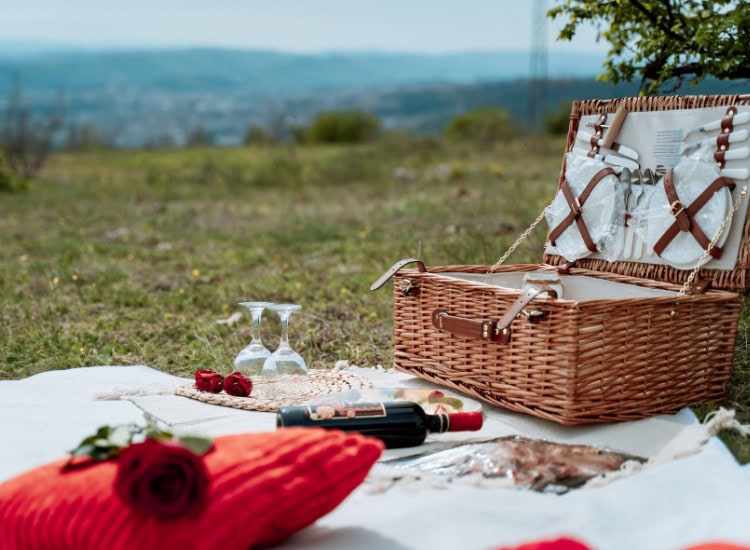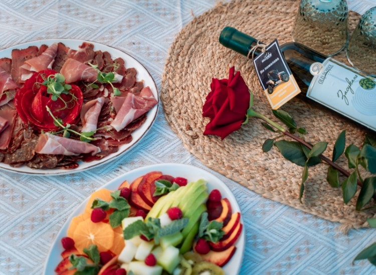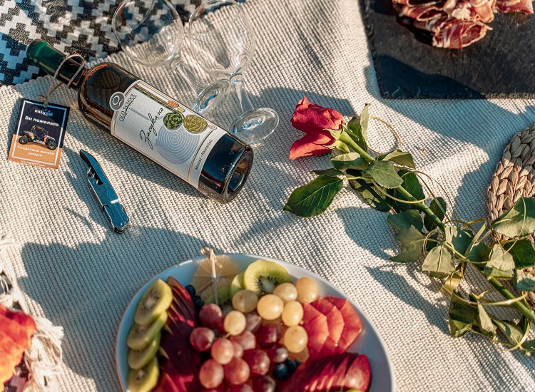 След вълнуващата романтична разходка, ние ще ви отведем до впечатляващо, уединено място, където да се насладите на специално подготвен за вас пикник с плато от вкусна местна храна и плодове и специално подбрано вино от винарна “Ялово” или винарска изба “Вила Юстина”. Отпуснете се и споделете магически мигове заедно на фона на магическа панорамна гледка! Създайте скъпи спомени, които да останат с вас за цял живот.